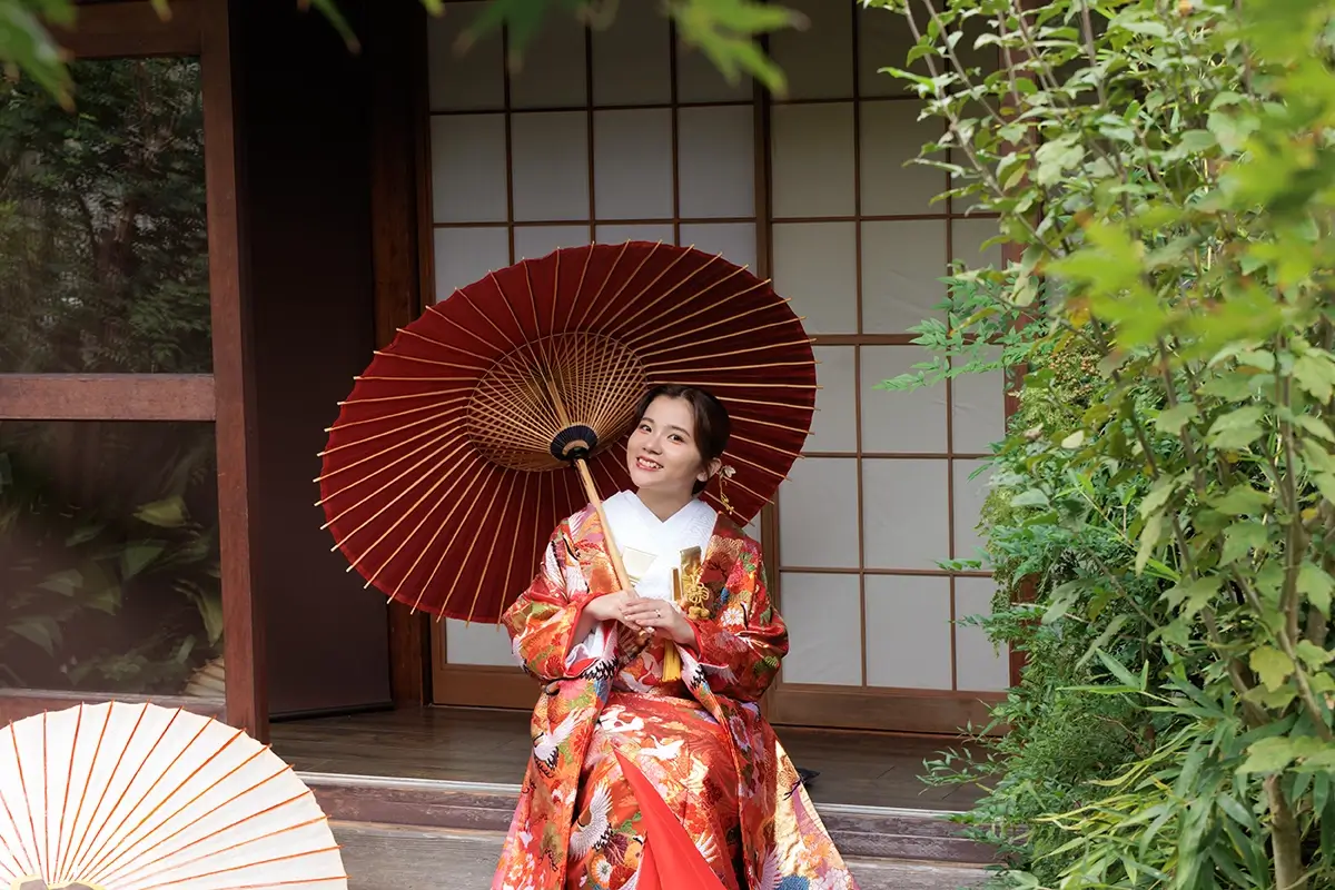 ご新婦様ヘアメイク(和洋2スタイル)、髪飾り、2名分肌着・足袋セット、番傘、ベール、