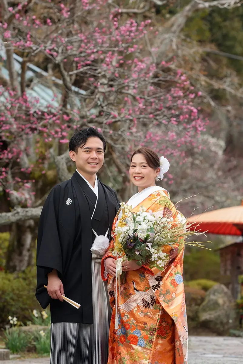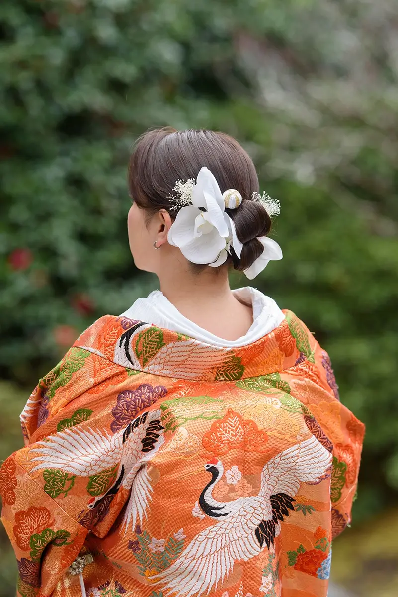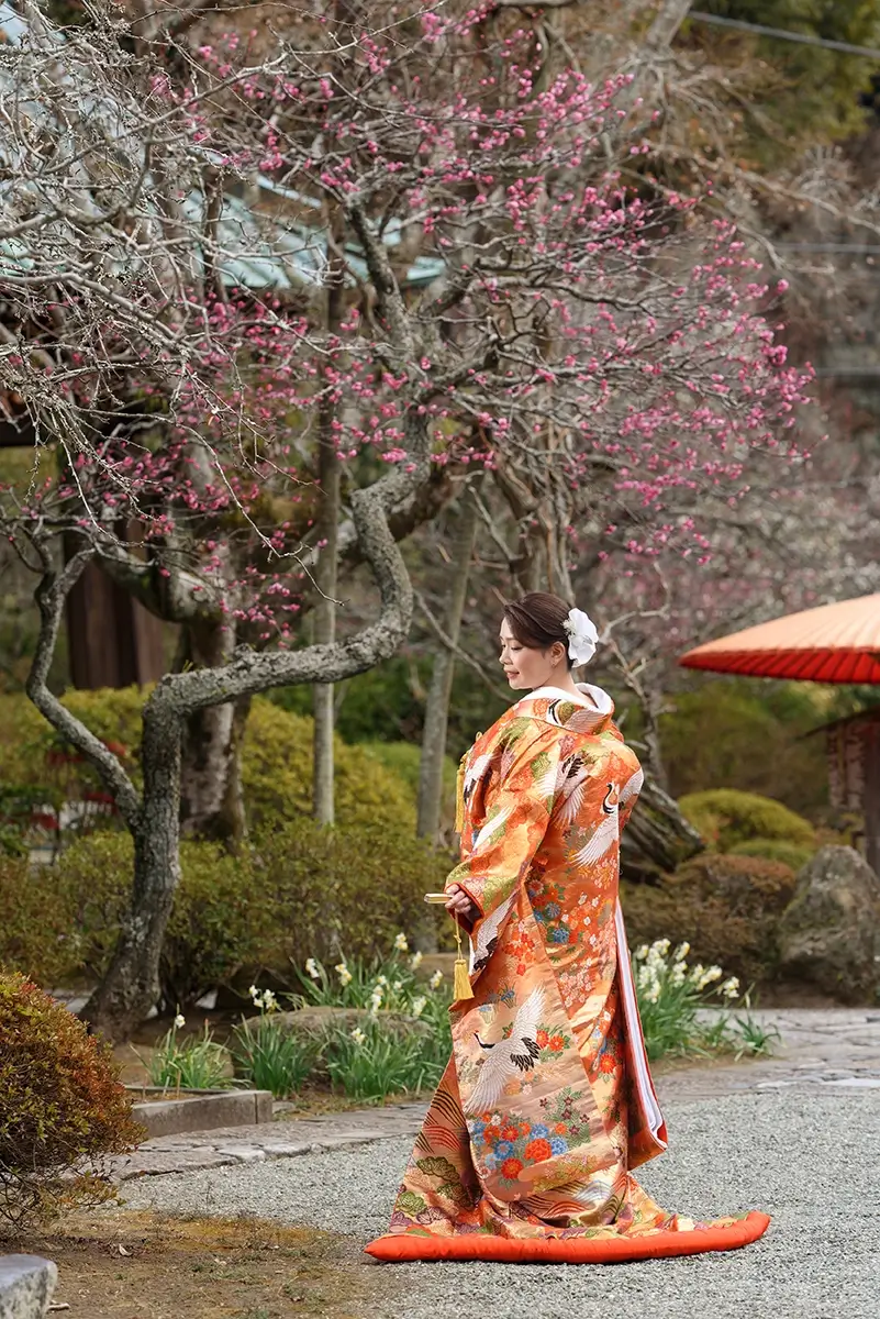 赤26 2023年12月22日 | 色打掛横浜 赤26 AKA26 気品があり和やかな色打掛 朱色に近いため、顔周りが明るくなる色味。ゆったりと鶴が舞い、裾にむかって青海波が広がる柄。裾や袖にむかって紫の色味も加わり穏やかな印象の一着。 SlideSlide BACK