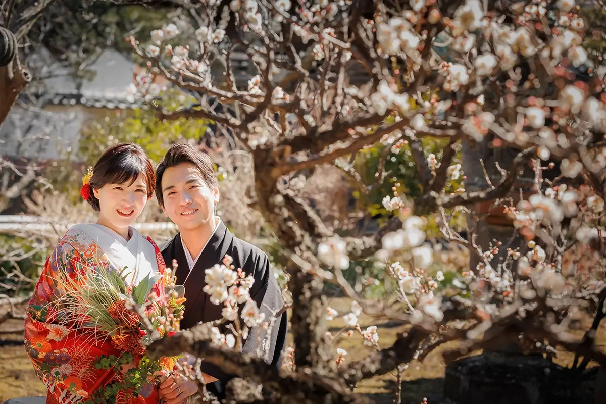 色打掛でも白無垢でも、一番似合う背景はやはり緑。