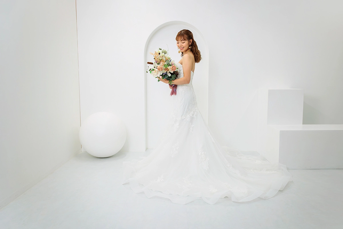 2023年12月24日 | ドレス横浜 縁-enishi-001 DRESS 9号 繊細な刺繍が美しいマーメイドドレス スウィートハートネックライン、ボディスの刺繍輝きのあるレースに花モチーフの刺繍が施されたチュールスカートが特徴のマーメイドドレス【Brand:PRONOVIAS】 SlideSlideSlide BACK