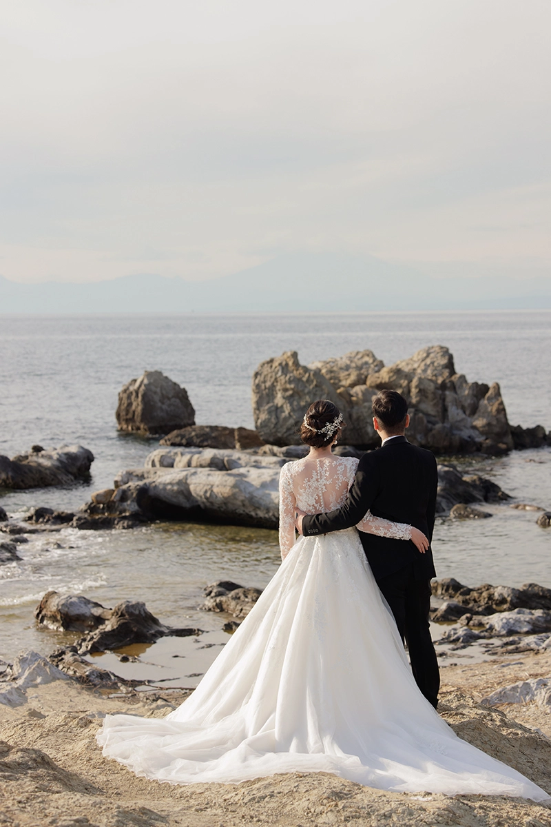 2023年12月24日 | ドレス横浜 縁-enishi-003 DRESS 9号 フェミニンな印象を演出ロングスリーブドレス 花模様を描いたロングスリーブにチュールのスカートが透明感を引き立てるAラインドレス背中と袖口にあしらわれたくるみボタンも繊細さと女性美を際立たせる一着【Brand:PRONOVIAS】 SlideSlideSlideSlideSlide BACK