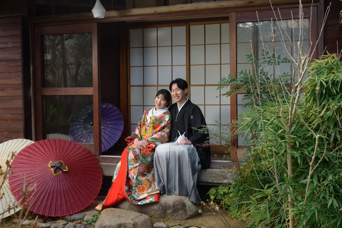 鎌倉 和装2着1時間 半額特別企画¥98,890(税込)鎌倉は12月の下旬まで優しく深まった紅葉が残ります 華やぎが落ち着き、観光地も少し静けさを取り戻すこの季節は、おふたりだけの特別な世界を残す前撮りにぴったり!...