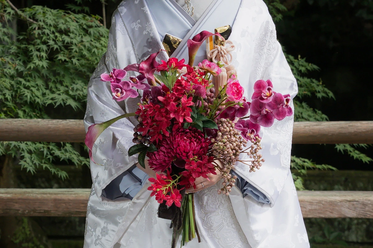 ご新婦様ヘアメイク、髪飾り、2名分肌着・足袋セット、番傘、ブーケ、