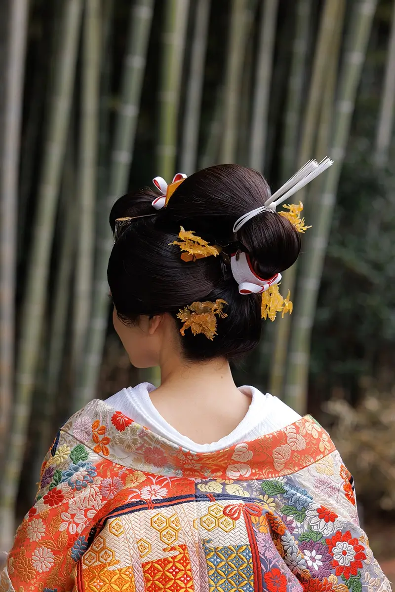 花嫁の伝統的な髪型で、上品で優雅な髪型とされています。