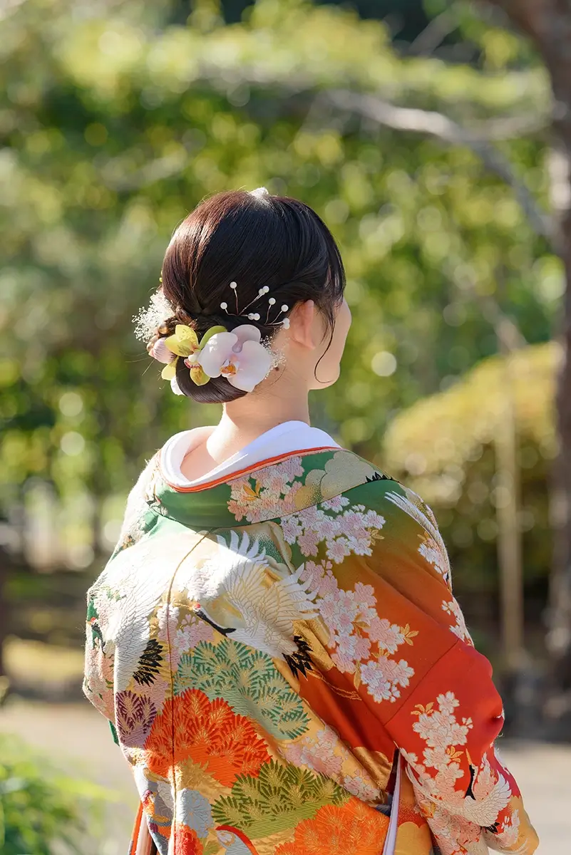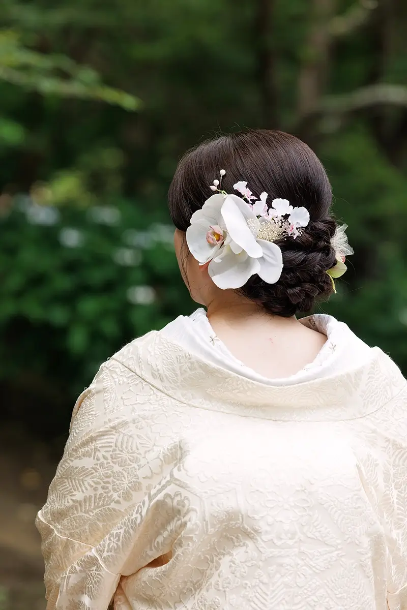 豪華絢爛なお衣装に負けてしまう事もなく、バランスのとれたヘアスタイルに仕上がります。