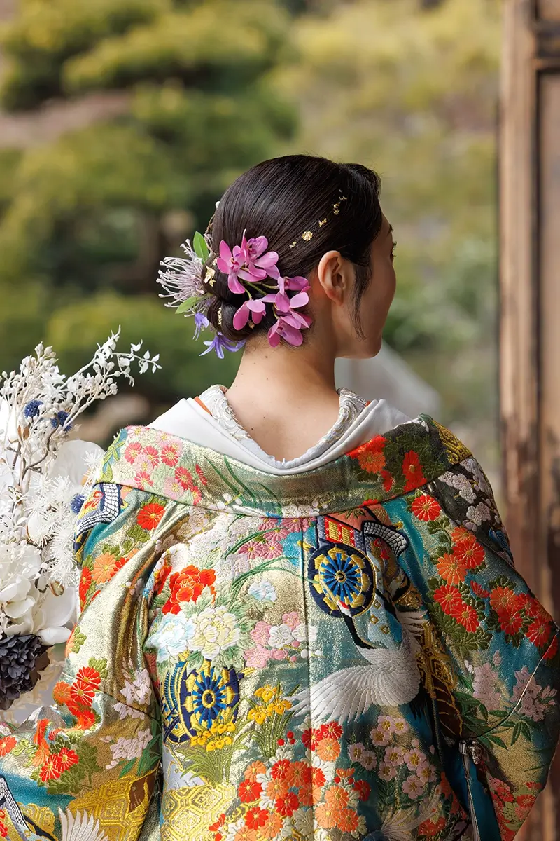 豪華絢爛な色打掛や純粋無垢をイメージする白無垢にも