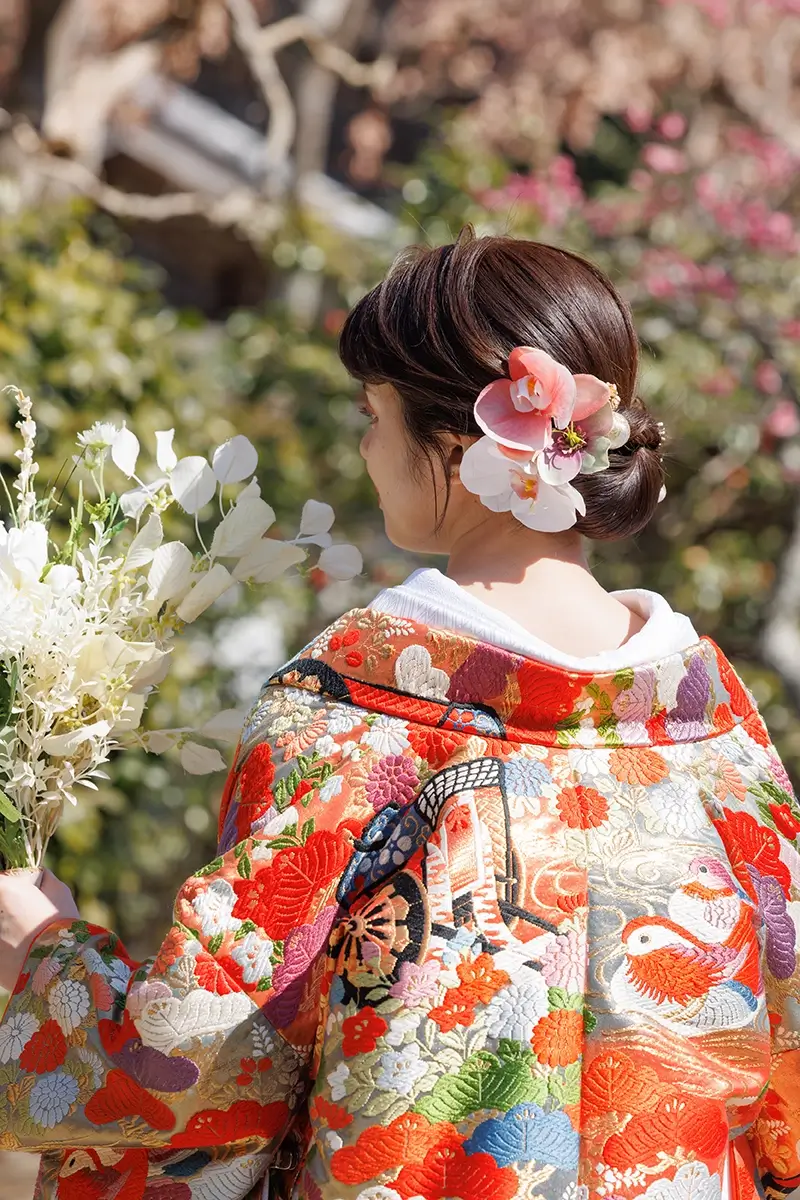 2023年12月28日 | オプション 髪飾り(お花) RENTAL ドレスにもお着物にも似合うお花飾り 豪華絢爛な色打掛や純粋無垢をイメージする白無垢にも洋装前撮りのウェディングドレスにも似合う豊富な種類の髪飾りをご用意しております。撮影日当日、ヘアメイクスタッフと相談いただき、お好きな髪飾りをお選びください。 色とりどり・大小さまざまなお花のご用意がありますので、豪華絢爛なお衣装に負けてしまう事もなく、バランスのとれたヘアスタイルに仕上がります。 和装2着プランをご注文のお客様は、お衣装に合わせてお花を変えることも可能です。 ※写真はイメージです。 当日ご用意しているお花と異なる場合がございますので、ご了承くださいませ BACK