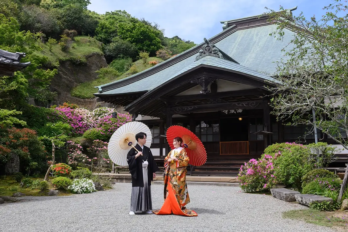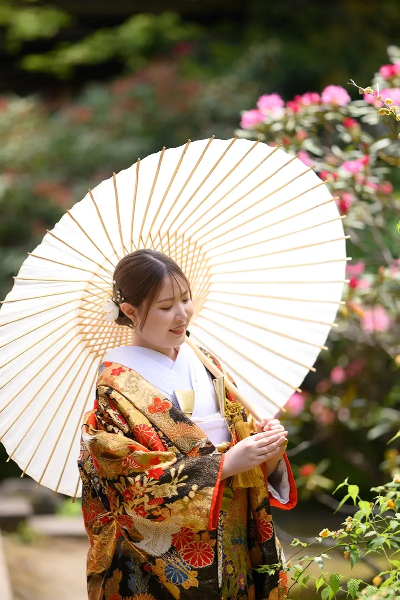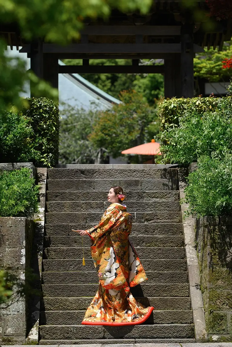 2023年12月22日 | 色打掛横浜 黄色07 KIIRO07 古典柄も格式高い色打掛 青や緑の色味も使われ、金の色味がより高級感のある印象に大きな鶴が菊や松の中を舞う柄おめでたい柄が多く描かれ、目を惹く一着 SlideSlide BACK