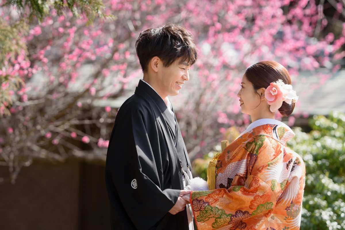 2月16日(日)に赤26の色打掛と白無垢を着て、らい亭と建長寺にて撮影してもらいました。梅の花が綺麗で天気も良く撮影日和でした。